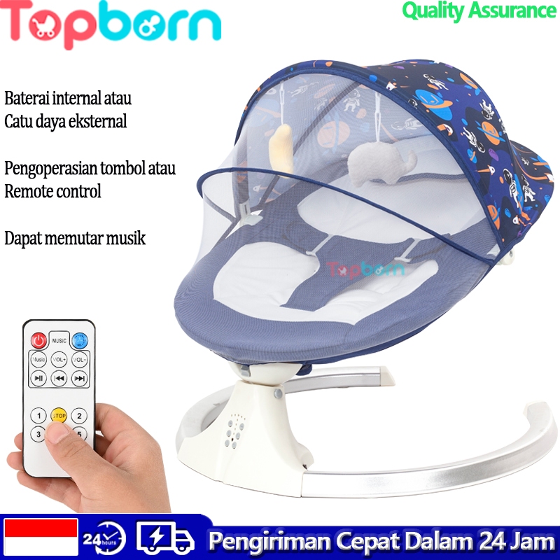 Topborn Rockers Tempat Tidur Bayi Elektrik Ayunan Remote Control Atau Tombol Pemutar Musik Kelambu Tertutup Sepenuhnya Koneksi
