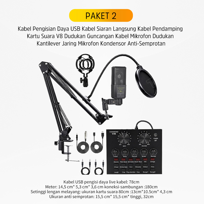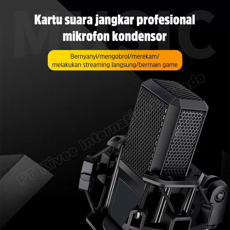 2025 KIVEE Microphone Live KV-US43 Black with Sound Card Set for Live Concerts PC Gaming Original