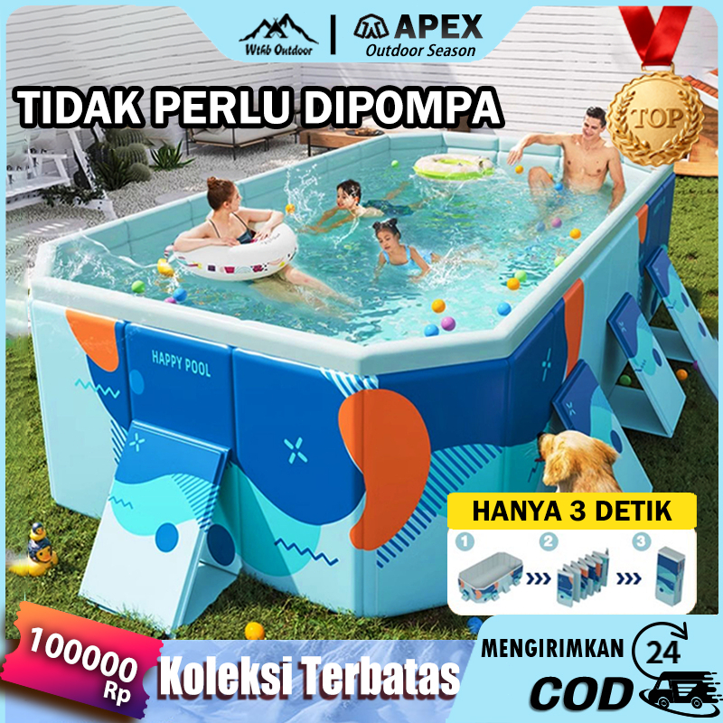 Kolam Lipat Jumbo Kolam Renang Anak Keluarga Jumbo Berkualitas Kolam Lipat Kotak Tanpa Pompa Untuk 1-10 Orang Swimming Pool