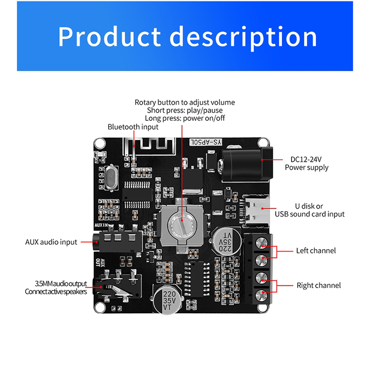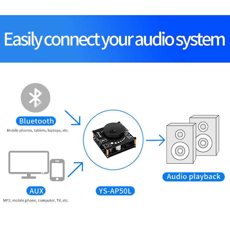 Amplifier YS-AP50L Stereo Digital Mini 50W Modul Papan Daya Audio Speaker AMP AUX APP 50W Kompatibel dengan Bluetooth