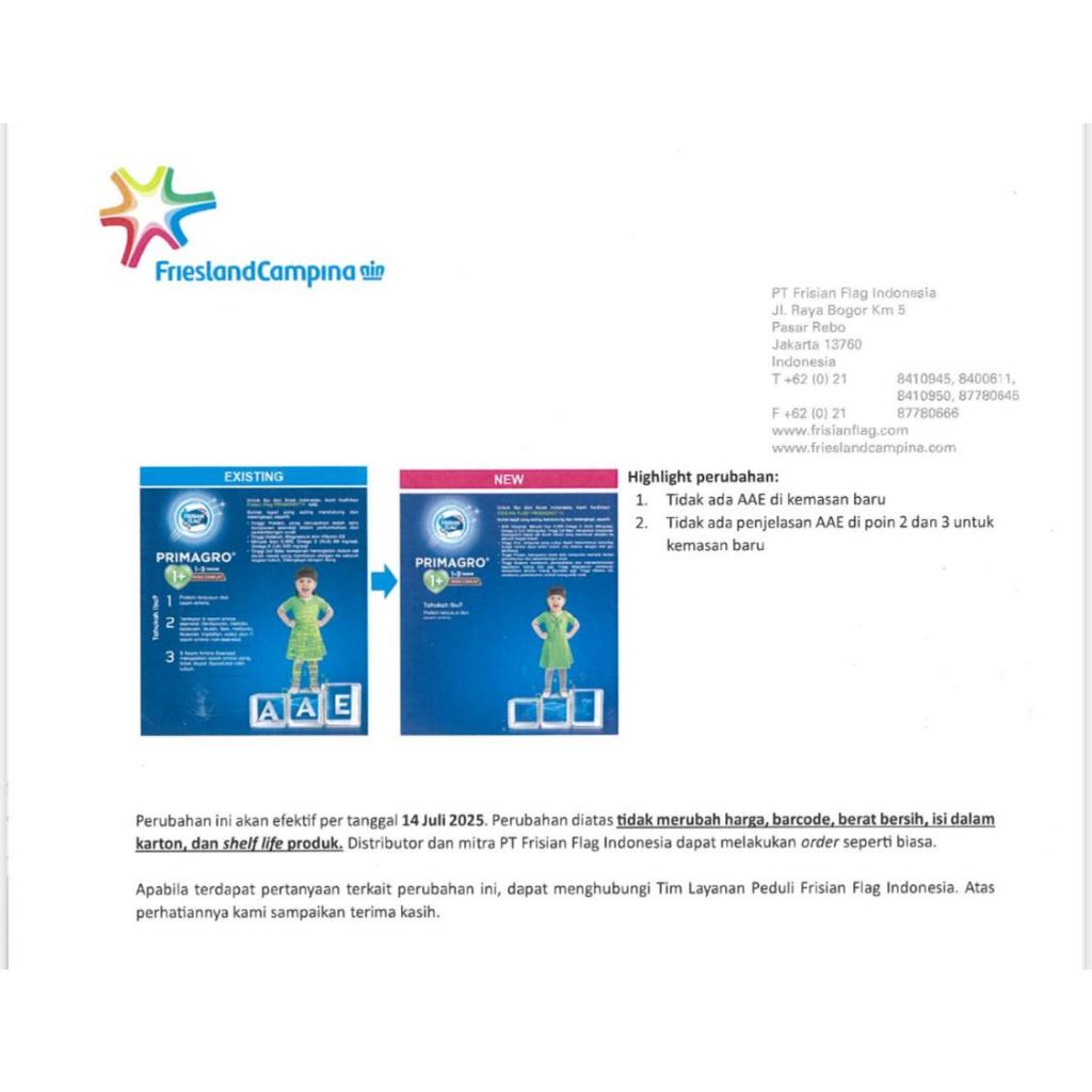 Frisian Flag Primagro 1+ 3+ Vanila Madu 3000 gr (1-3 tahun) Susu Formula Pertumbuhan Anak