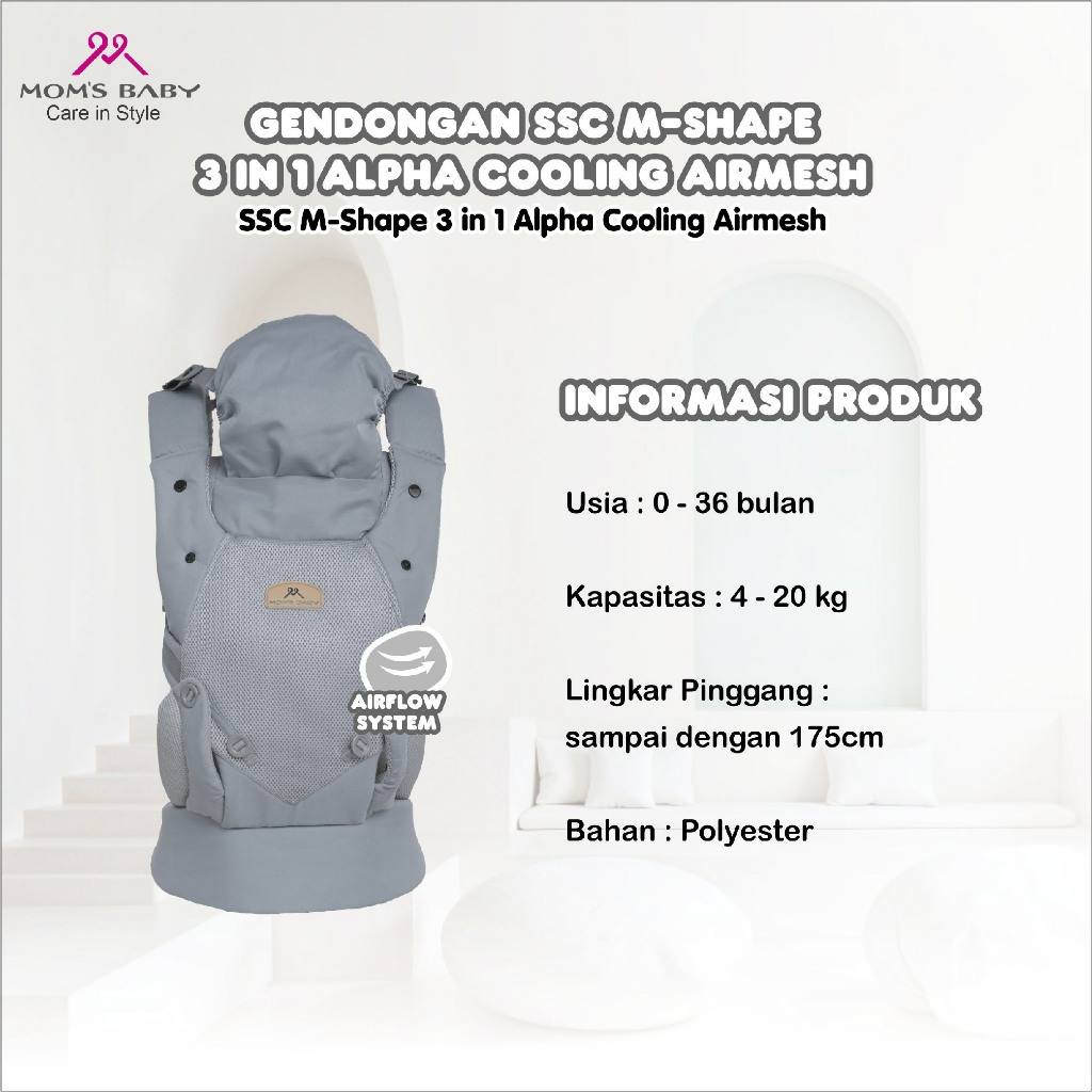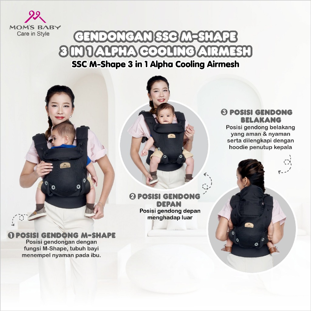 Moms Baby Gendongan SSC M-Shape Alpha MBG2068 | Baby Carrier Ergonomis Gendongan Ransel M-Shape Depan Belakang Toddler | Anti Pegal