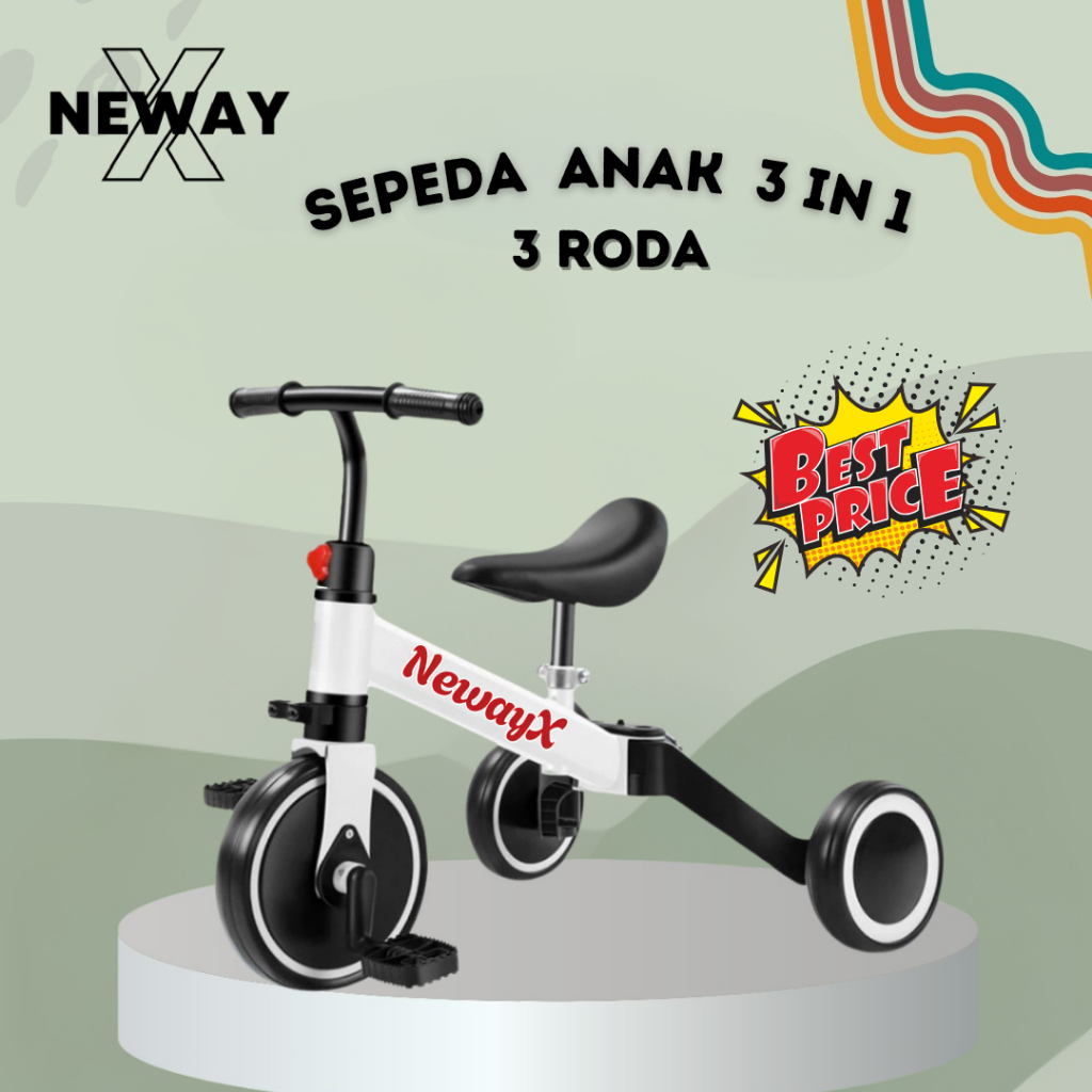 NewayX Sepeda Roda Anak 3 in 1 Balance Bike Pedal Roda 2 Tiga Mainan Keseimbangan Multifungsi Push