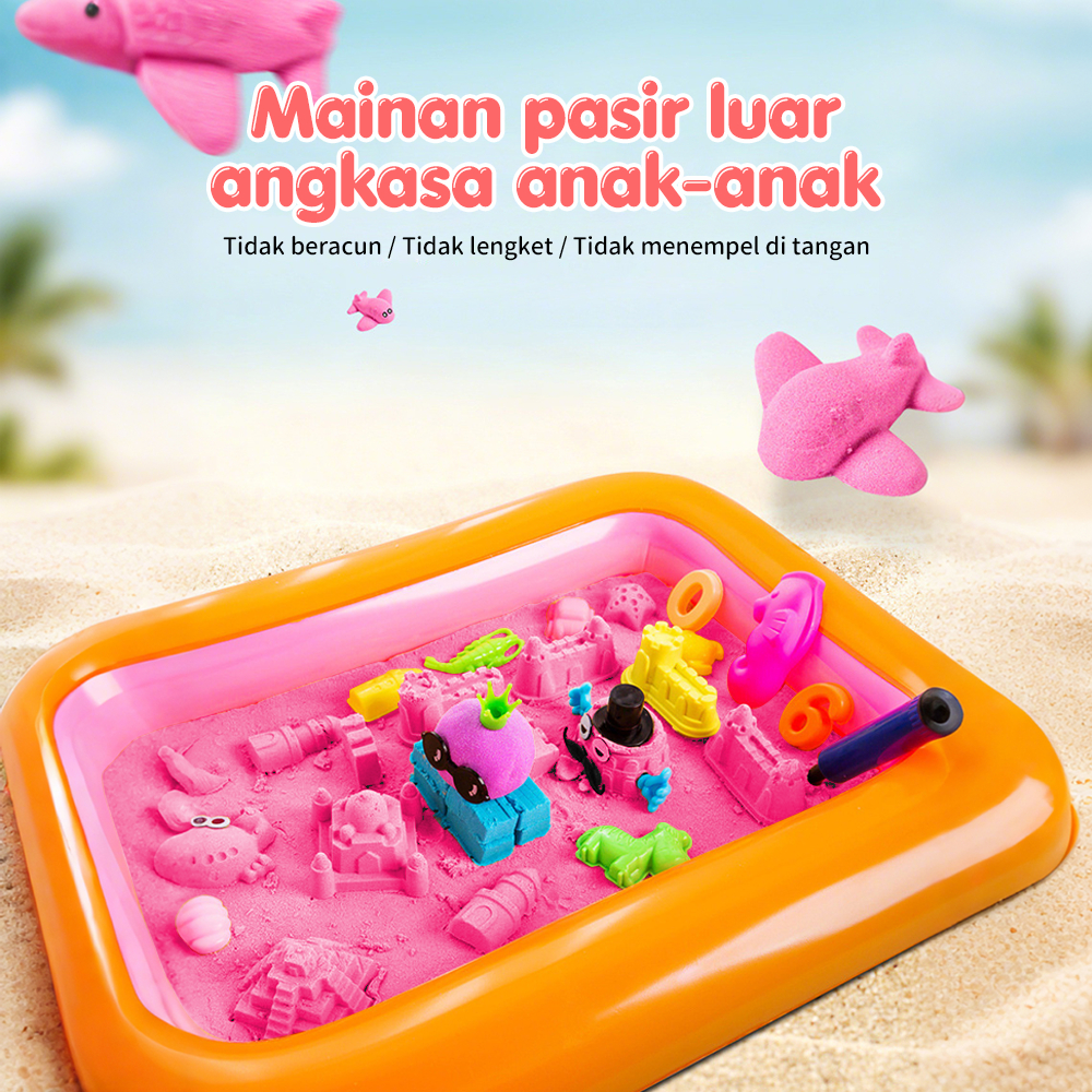 BABYCOLOR 2KG DIY Mainan Pasir Ajaib Set Tanah Liat Plastisin Magic Sand + Box + Inflatable Pool