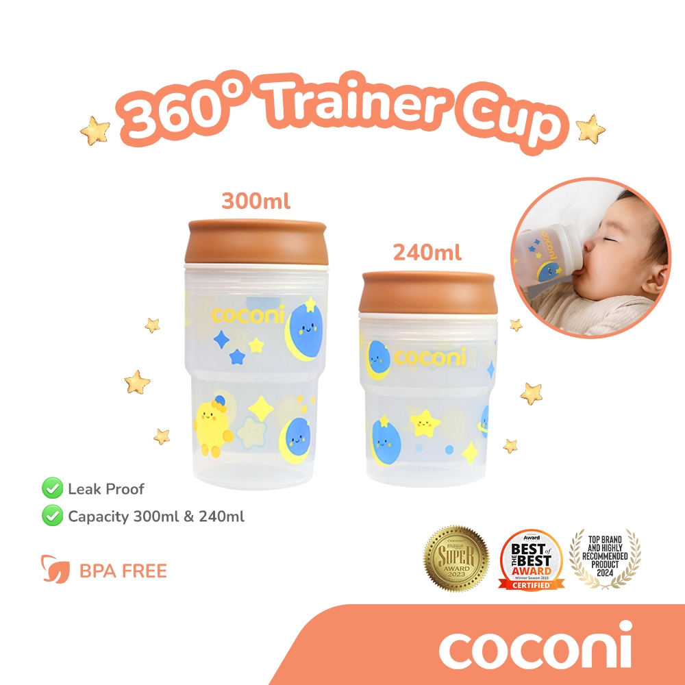 COCONI 360° Trainer Cup – Gelas Belajar Bayi Anti Tumpah | 2-in-1 Sip & Open Cup | BPA Free | 240ml & 300ml