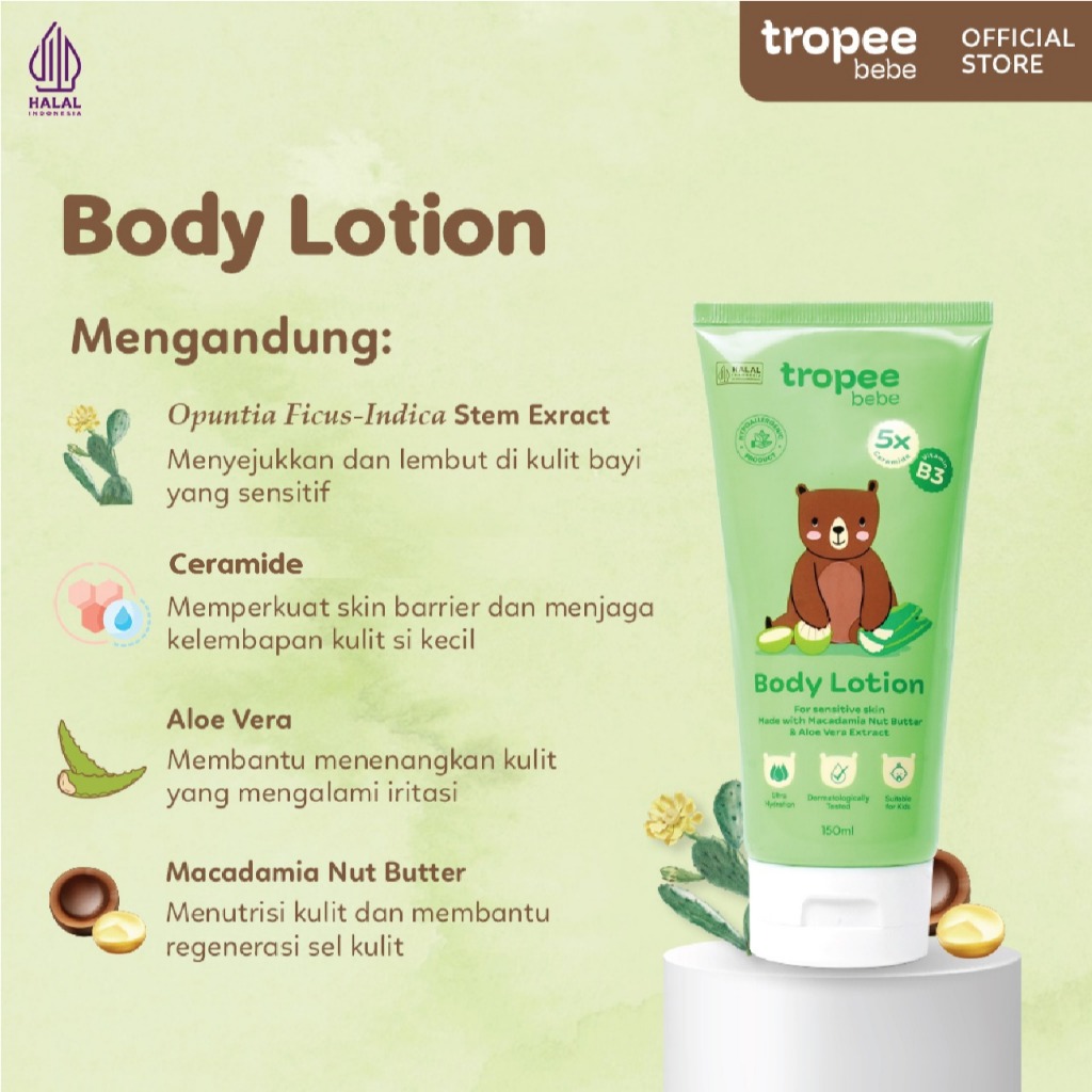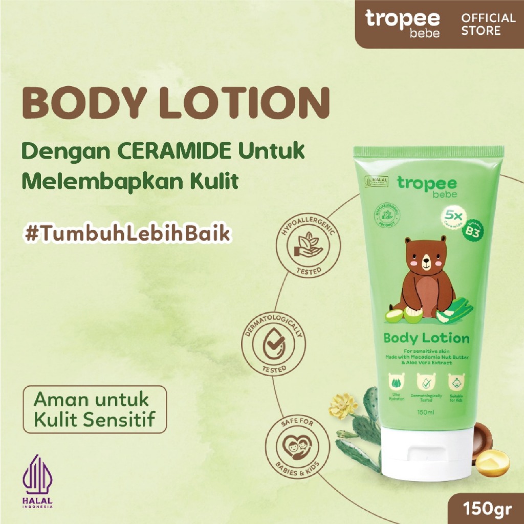 Tropee Bebe Body Lotion 150ml | Melembutkan dan Melembapkan Kulit | Skincare Bayi dan Anak