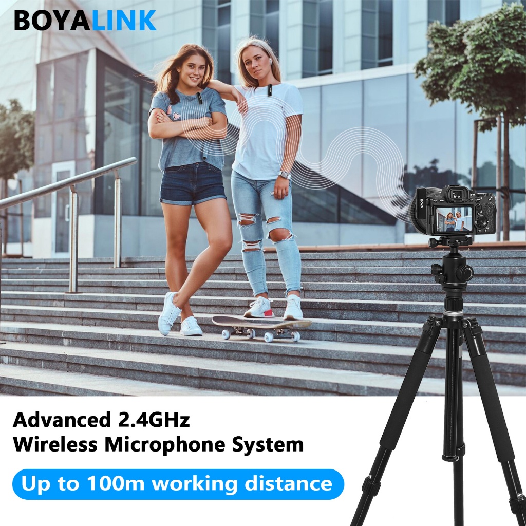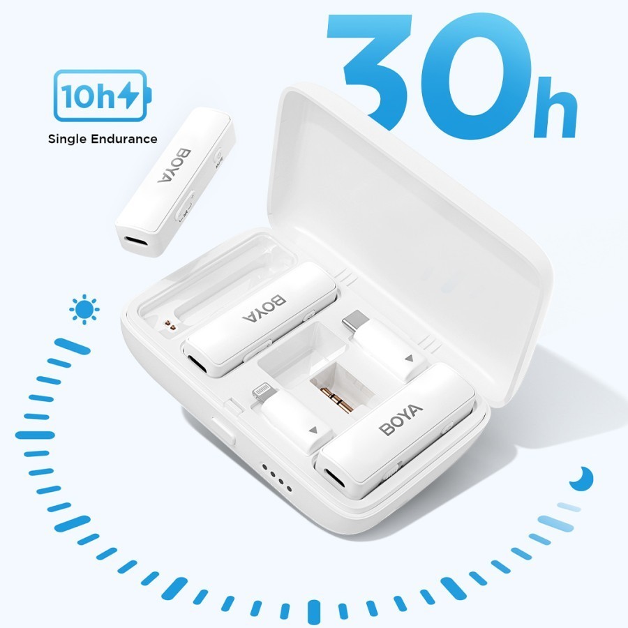 BOYA BOYALINK Sistem Mikrofon Nirkabel 2.4GHz Wireless Microphone All in One dengan Casing Pengisi Daya dengan Konektor
