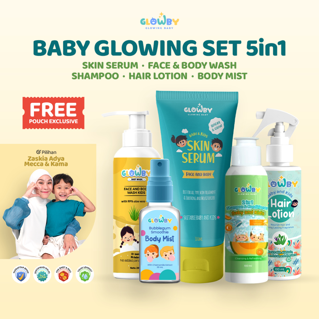 (Glowby) Free Pouch Exclusive Bundling Special Paket NewBorn Serum Hair Lotion Shampoo Face Body Wash And Body Mist