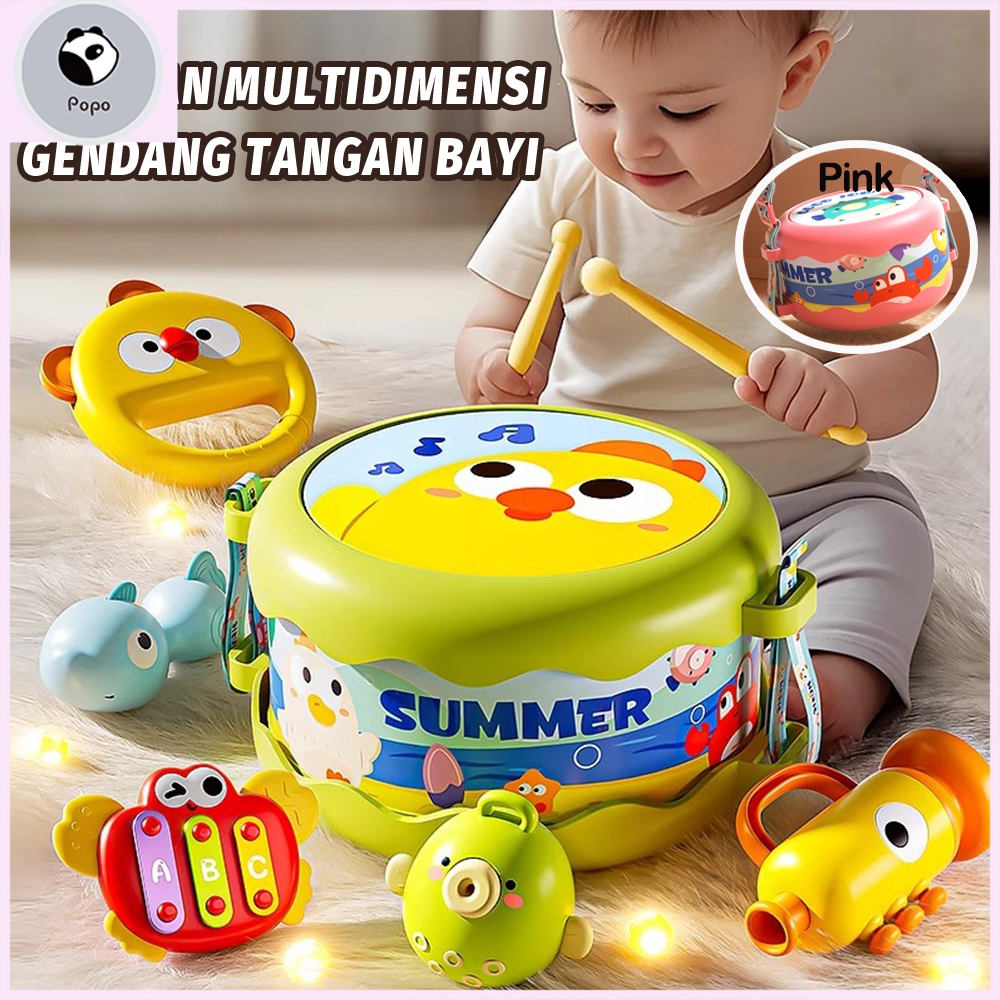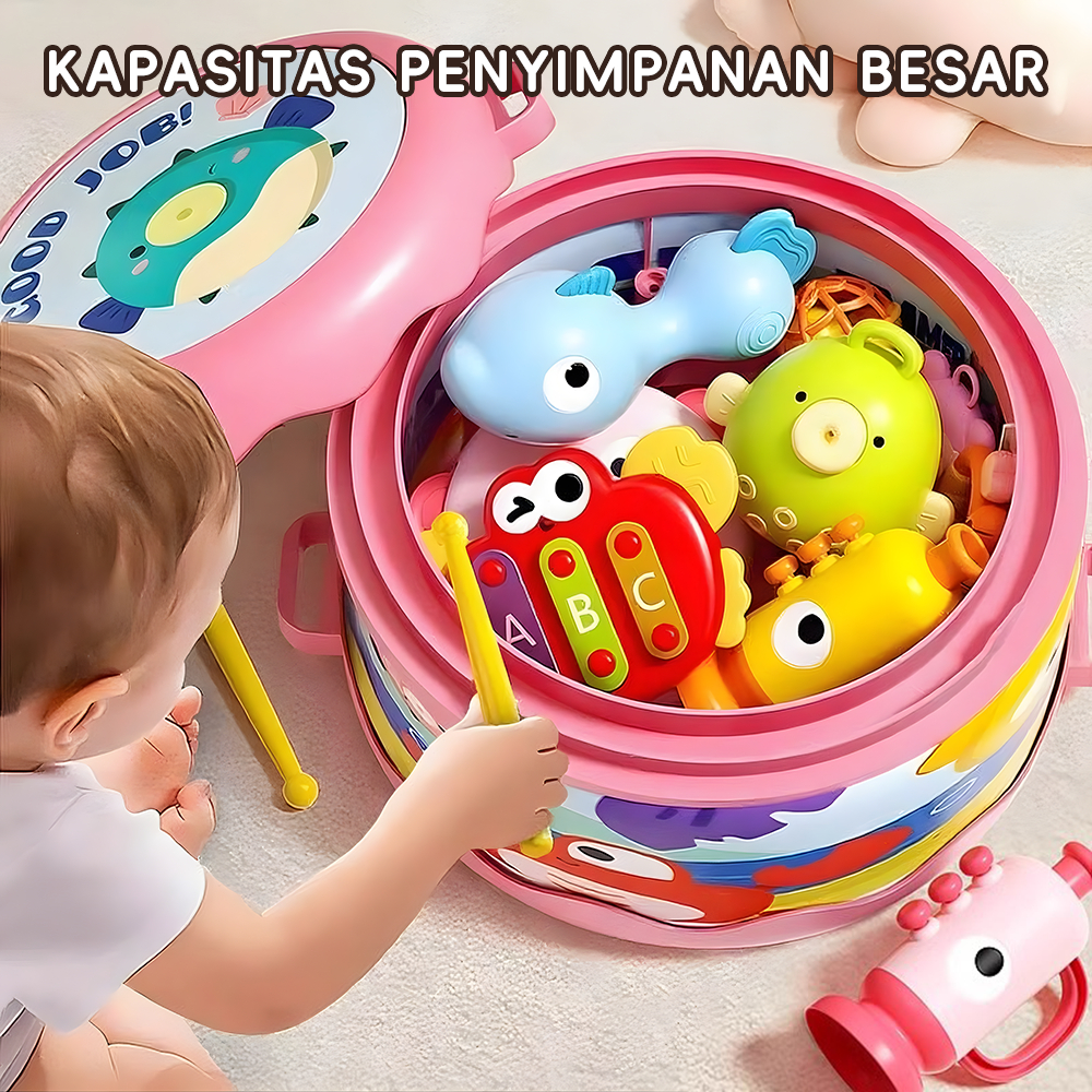 Mainan Bayi Drum Set 5 in 1 Mini Musik Drum 0 -3 Tahun Mainan Anak Edukasi Mainan Instrumen Perkusi