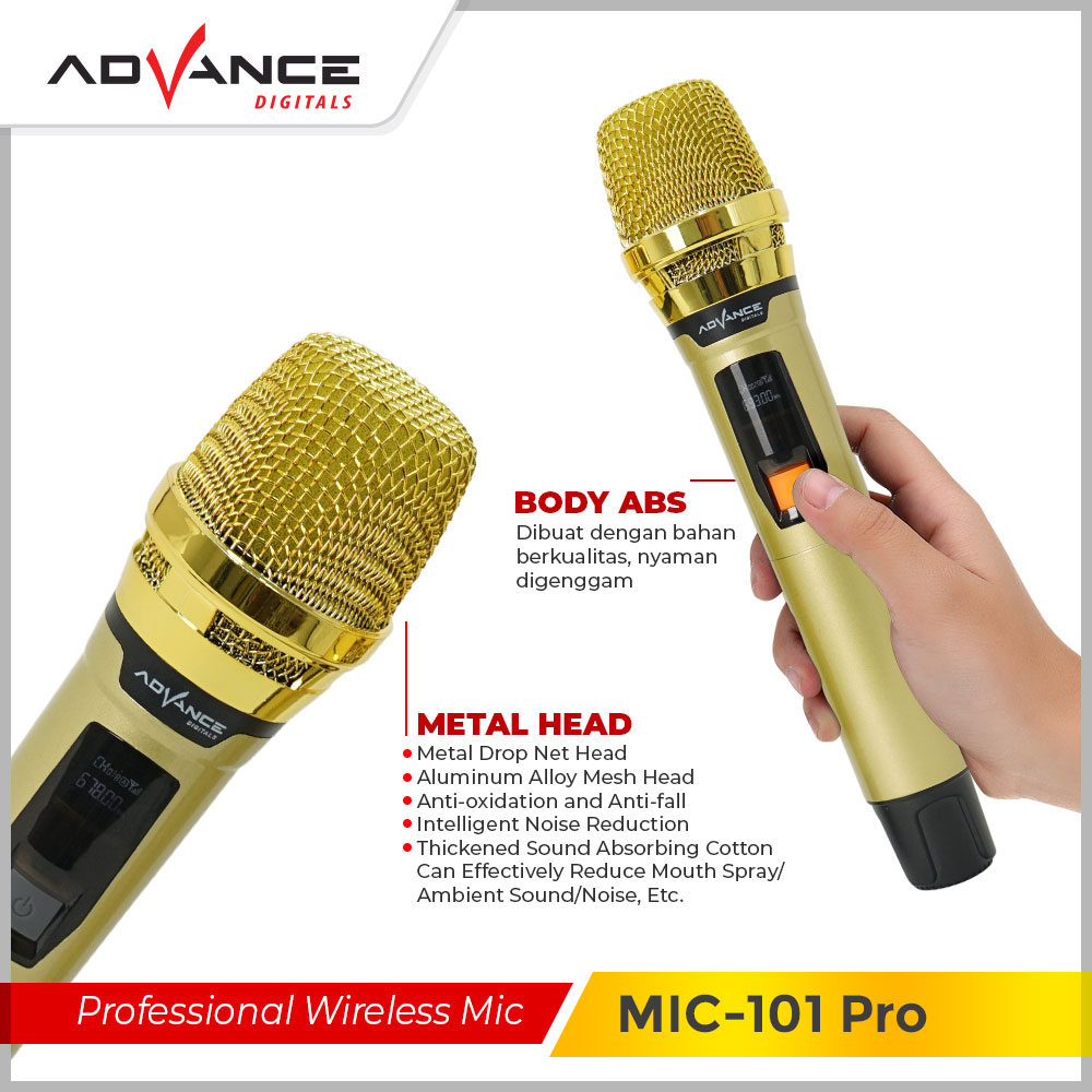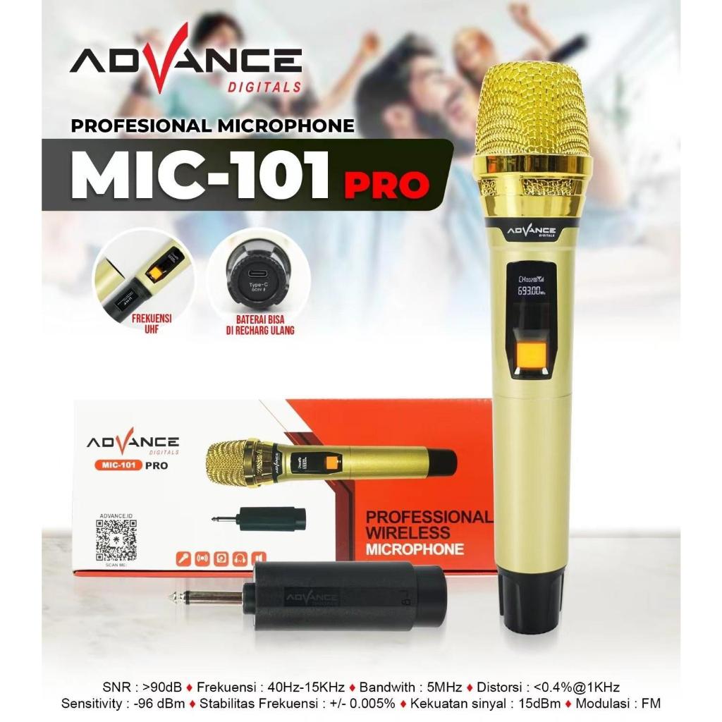Advance Mic Wireless UHF (Wireless) Bisa Dicharger Profesional Microphone digital Batrei dapat di Charger (sudah termasuk kabel data)