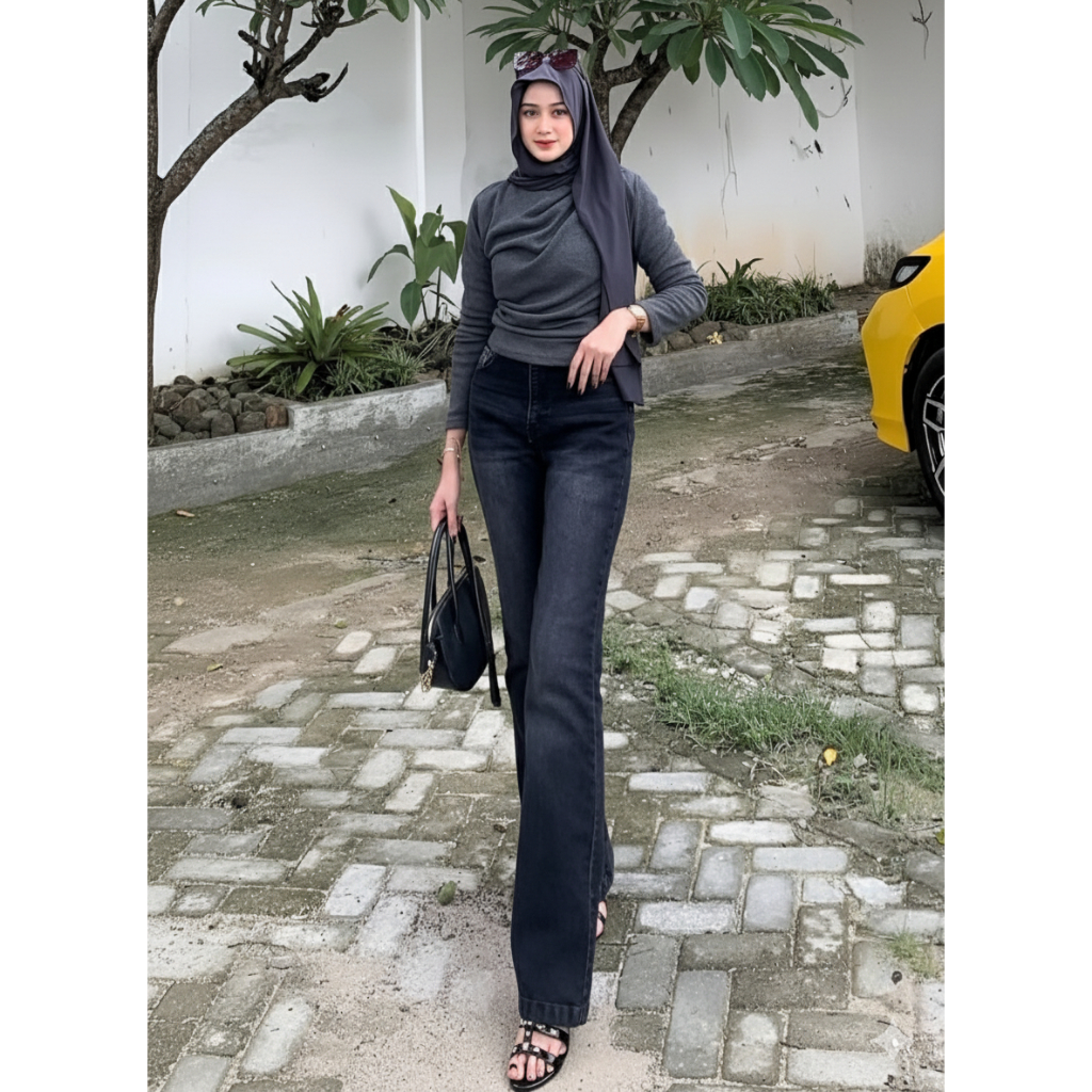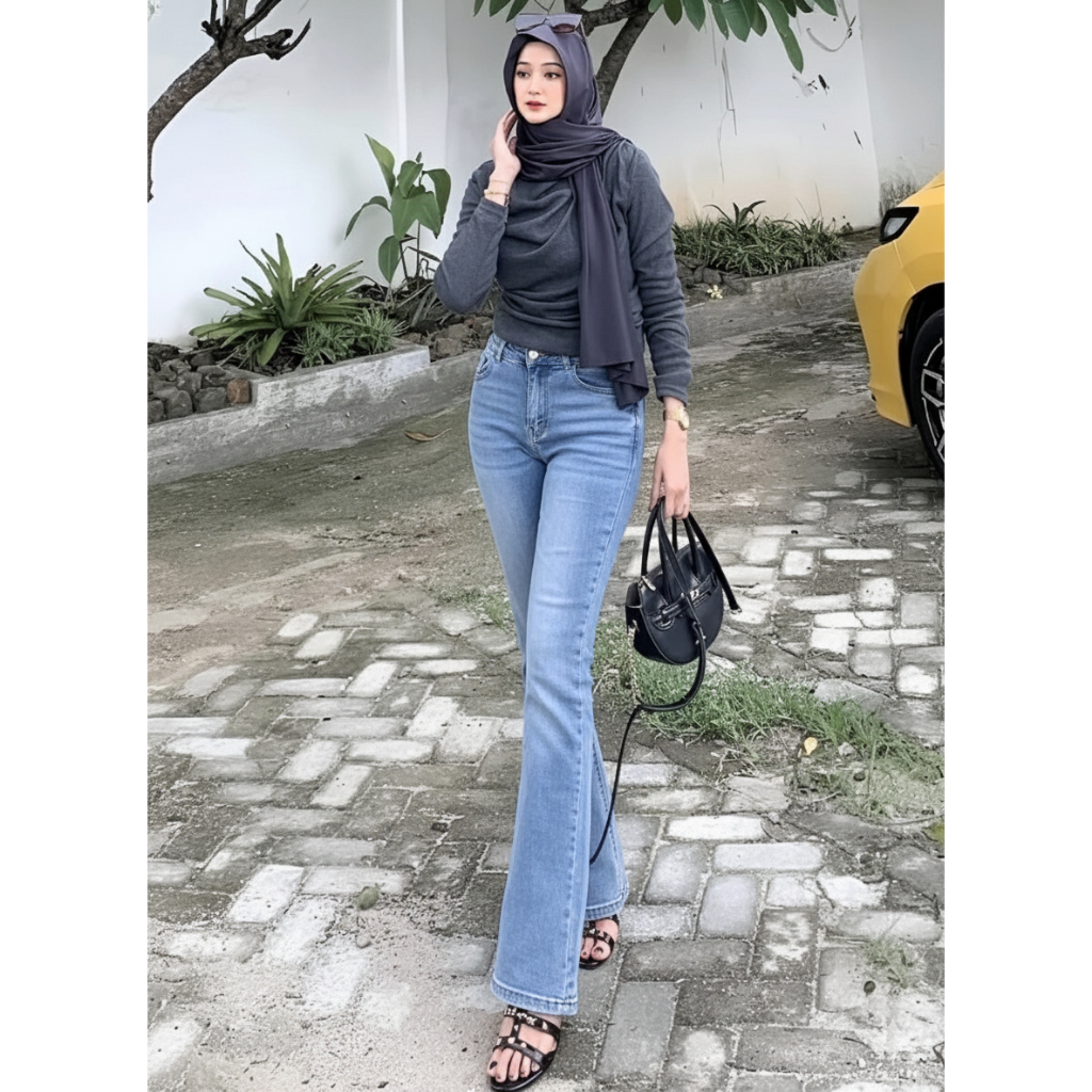 Celana Jeans Cutbray Highwaist Wanita Kekinian Bahan Jeans Denim Stretch Premium Terlaris
