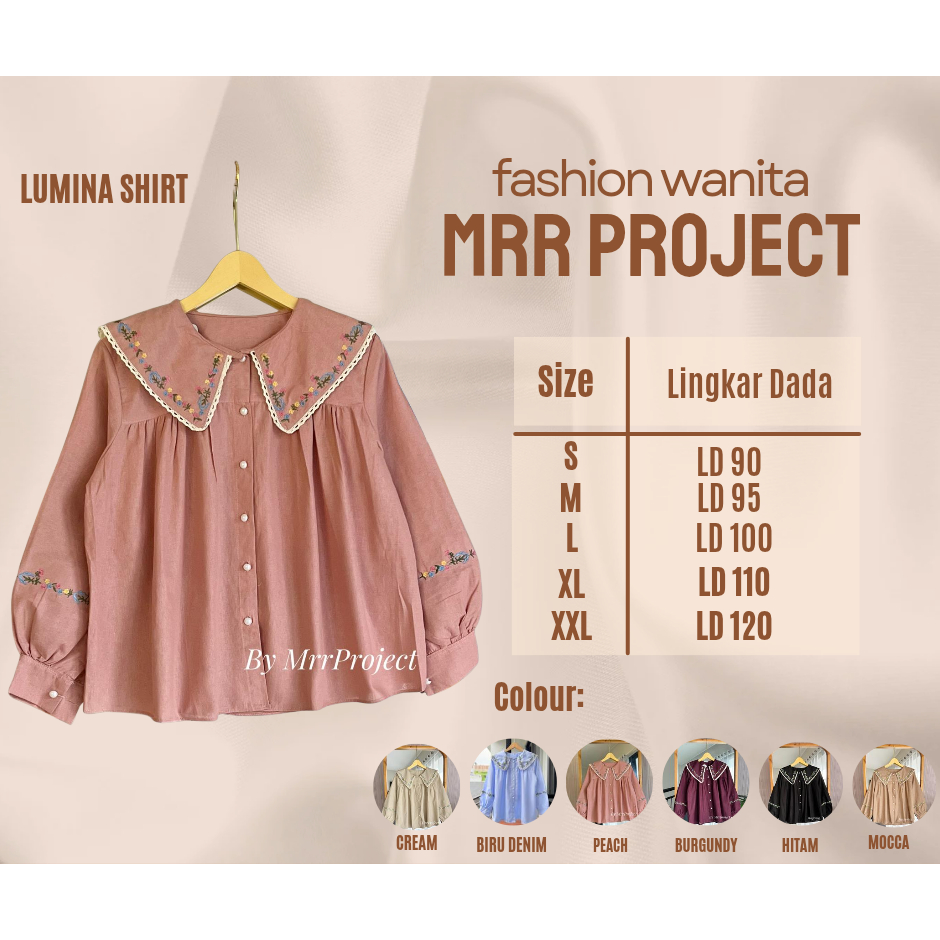 Atasan Bordir Wanita kemeja linen | Size XXL XL L M S | Atasan Wanita Best Seller LD 120 110 Dst | lumina shirt by mrr project