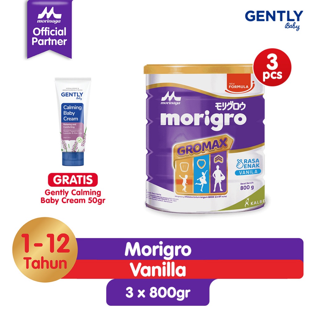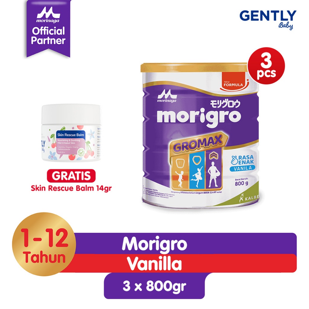 Morigro Powder Vanilla/Madu 800gr x3 Free GENTLY Calming Baby Cream 50g/GENTLY Skin Rescue Balm