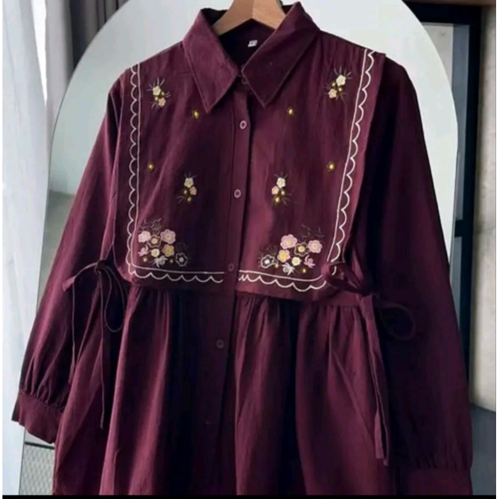 kemeja blouse bordir linen atasan wanita casual nyamam hajerisma