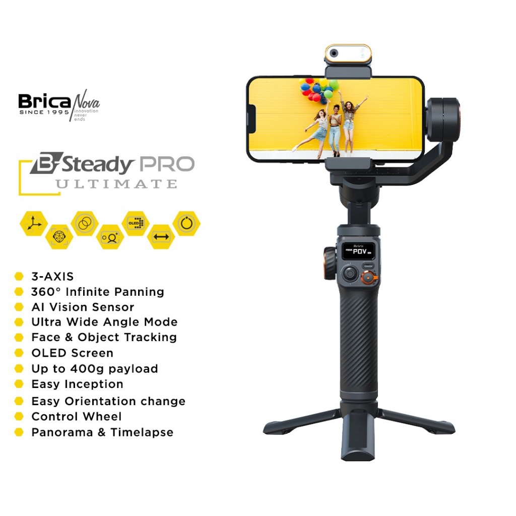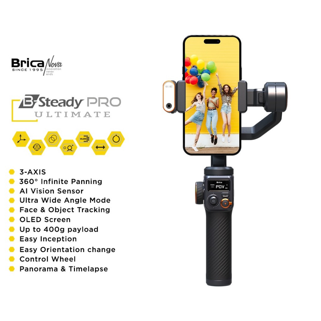 Brica B-Steady PRO 3-Axis Gimbal Hp Smartphone Stabilizer - BSTEADY PRO 2023 - XS 2 - 2P POCKET 2022 - NEW VERSION