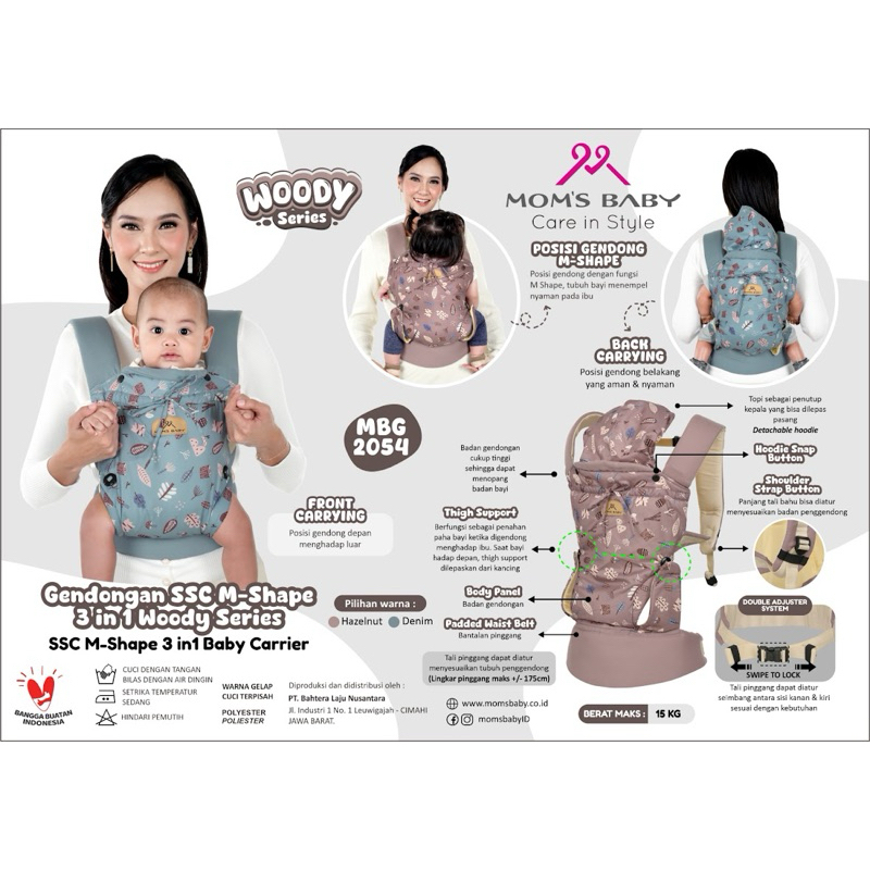 MOMS BABY GENDONGAN BAYI SSC M-SHAPE 3in1 Canary | Woody | Miracle |Onyx Series, 3 Pss Hadap Luar Dalam