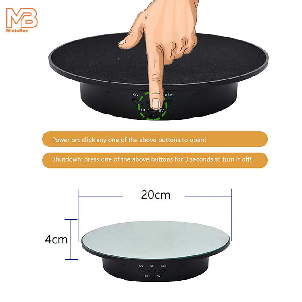 Turn Table Display Table Rotary Rotasi 360 Plus Kaca Diameter 20cm