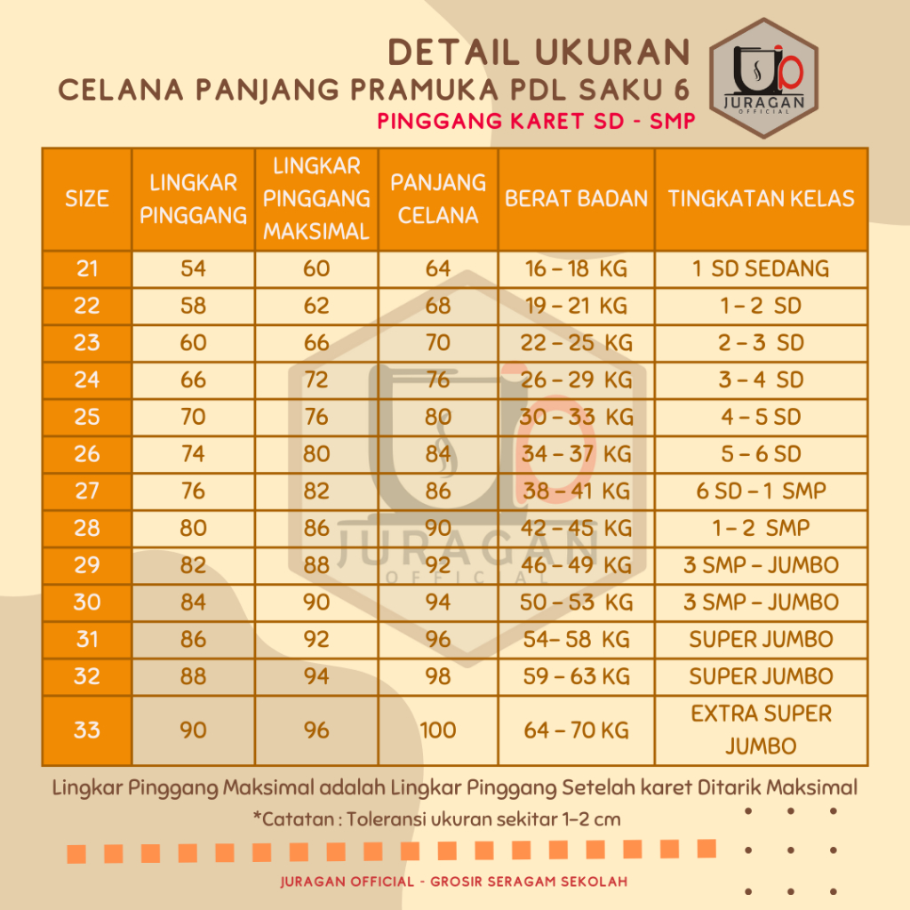 JRG Celana Pramuka PDL Kempol Saku 6 Seragam Sekolah SD SMP SMA Karet Pinggang Drill NAGATA