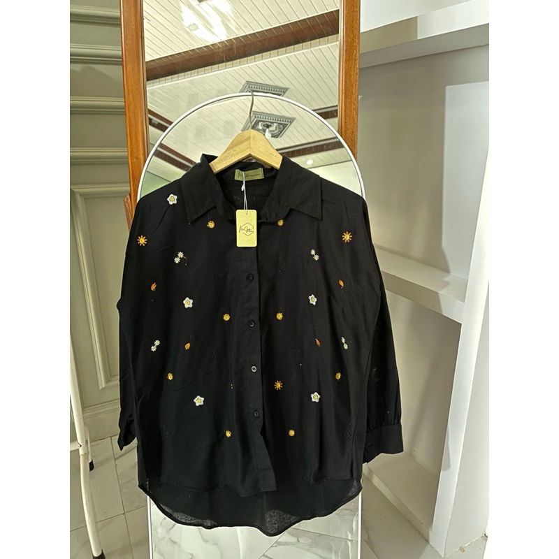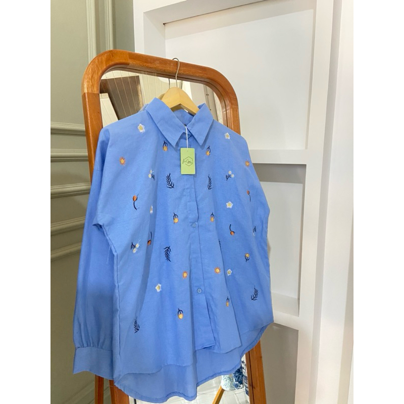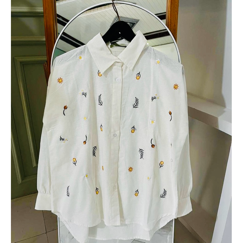 Elga Blouse / Kemeja Wanita Bordir Linen / Kemeja Wanita Lengan Panjang / Kemeja Wanita Bordir Wanita