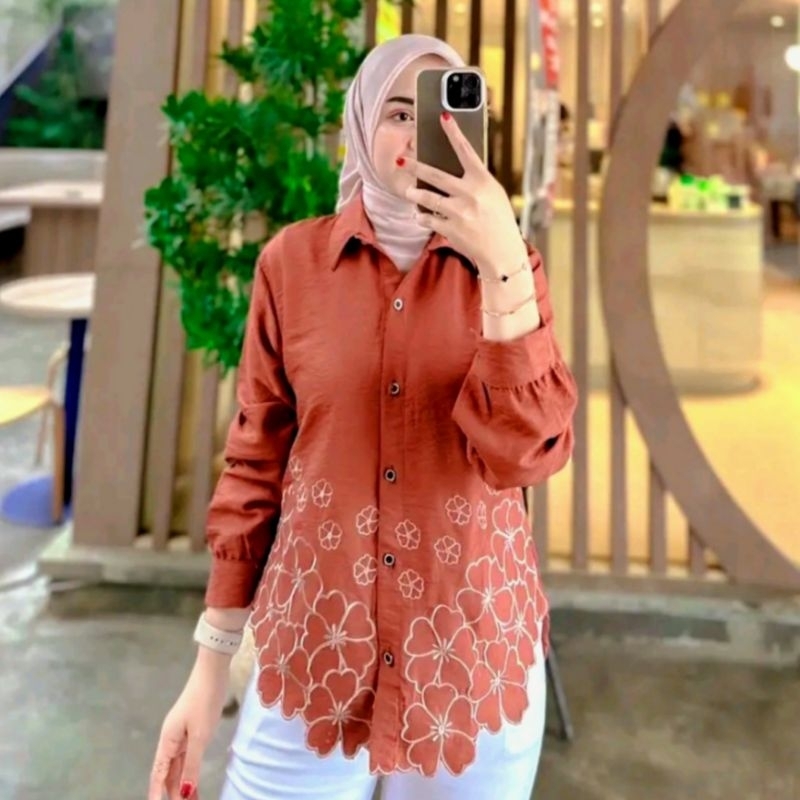 Laura Kemeja Atasan Blouse Wanita Bordir Bunga Korean Style