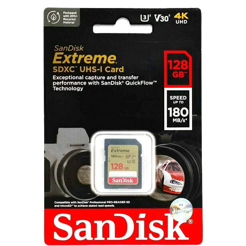 SanDisk SDXC Card Extreme 128GB UHS-I Class 10 U3 V30 for 4K UHD (Up to 180MB/s)