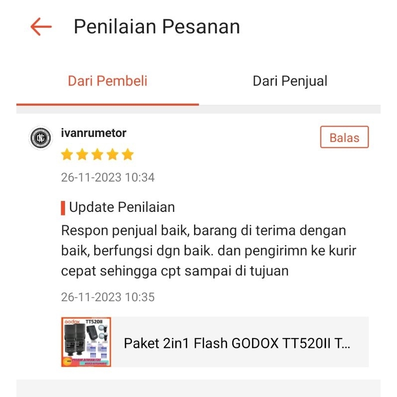 Paket 2in1 Flash GODOX TT520II TT520 II + Trigger Godox For Canon Nikon Sony Fujifilm