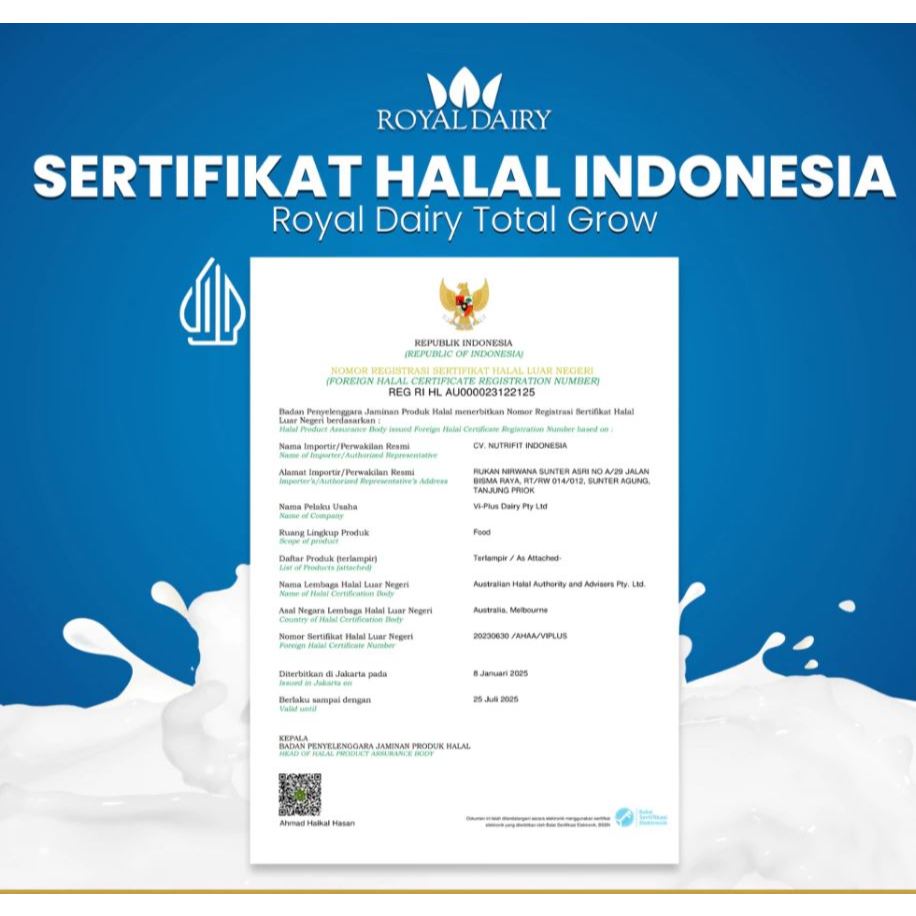 Royal Dairy Total Grow Organic 800 Gram - USIA 1-12 TH - Susu Pertumbuhan Anak