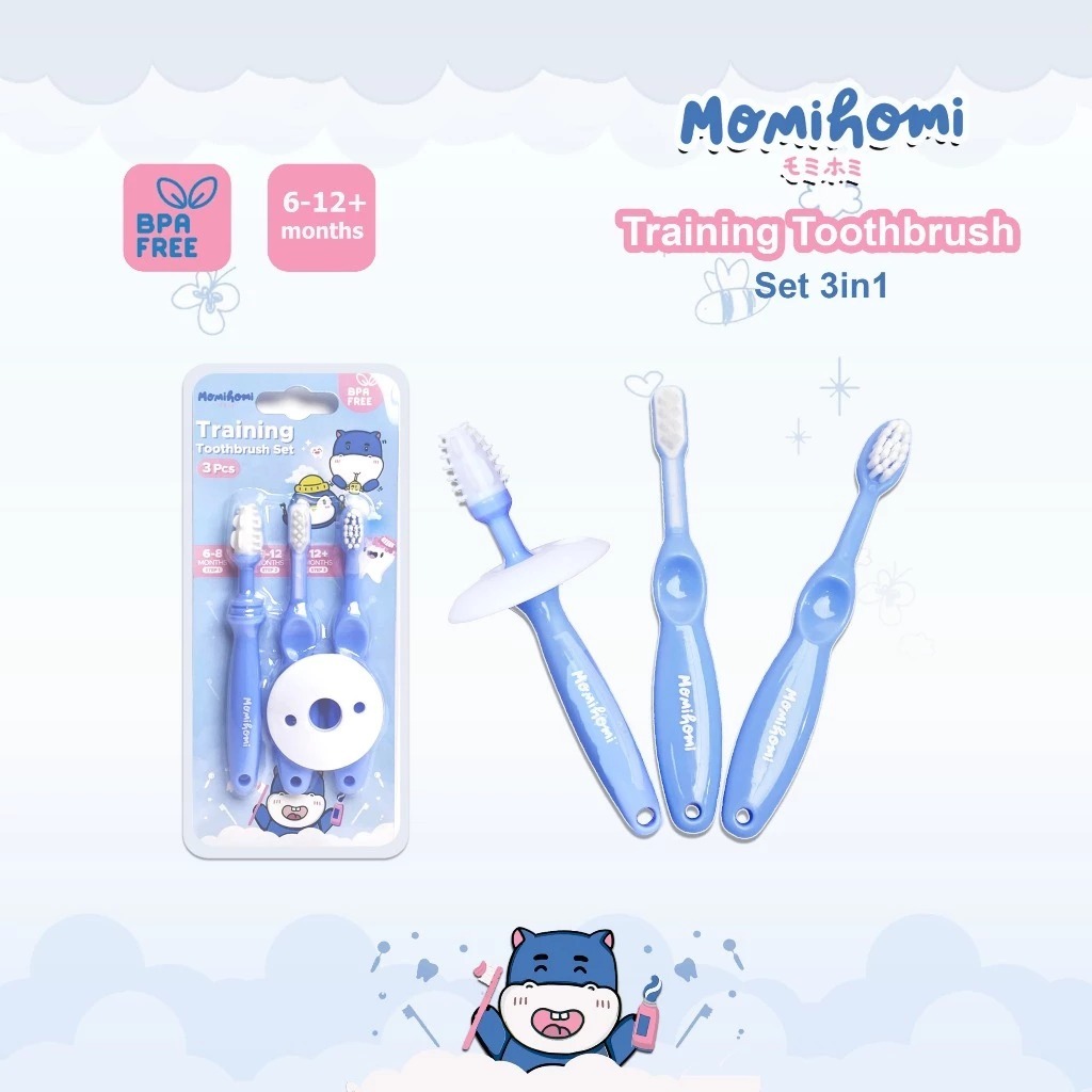 PAPIKA x MOMI HOMI Training Toothbrush 3 in 1 ( 3059 ) Pembersih Mulut Anak Bayi 6-12 Month Sikat Gigi Therapi Silicone Soft Serat & Silikon