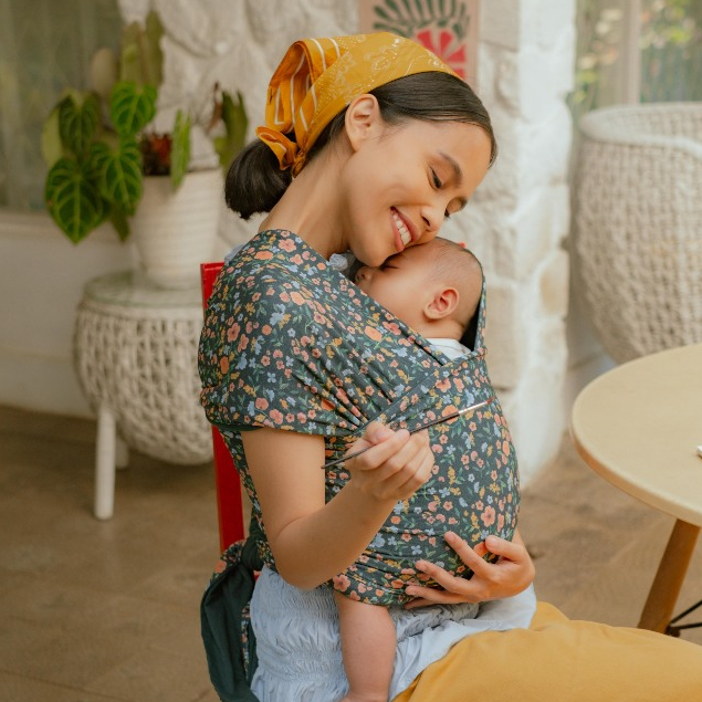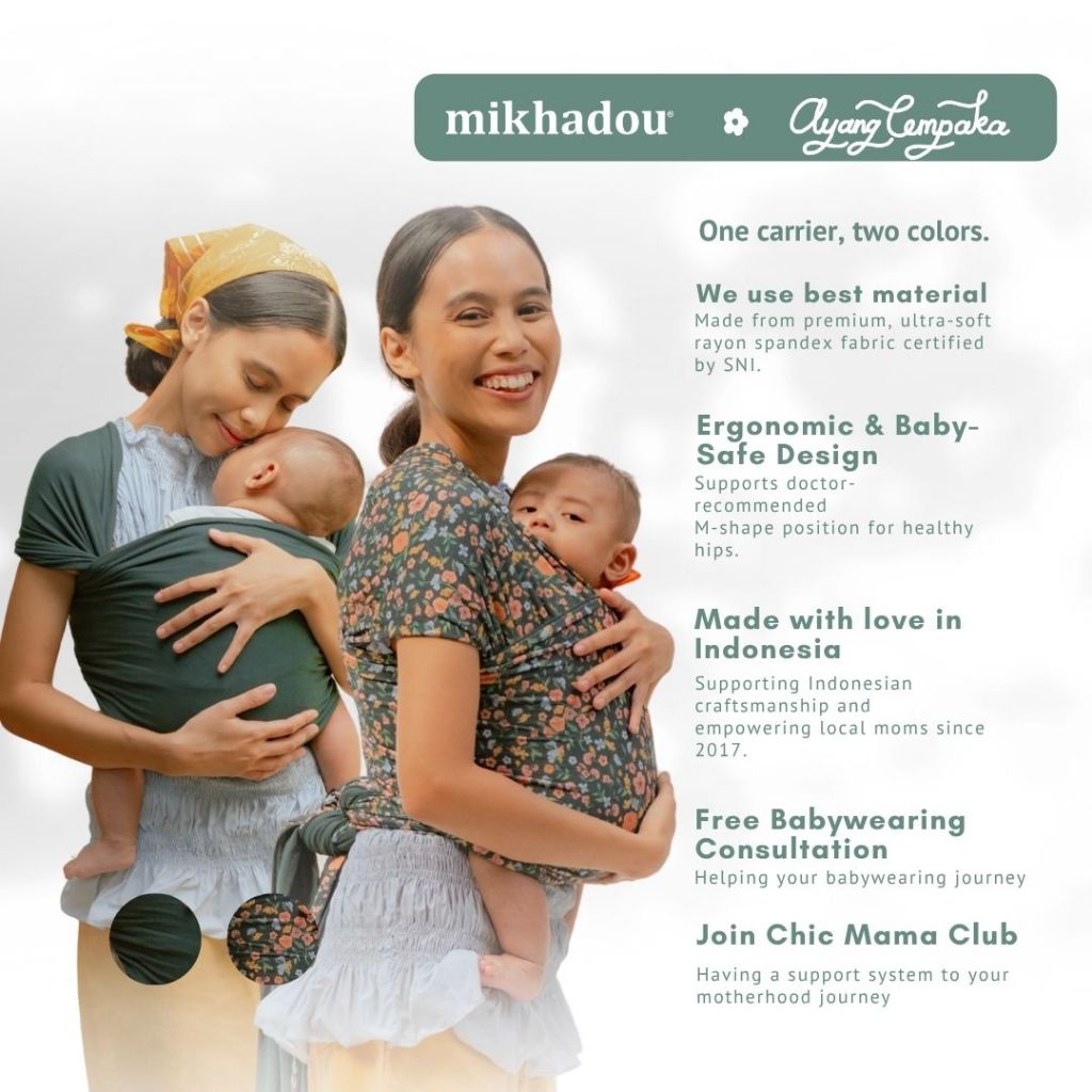 Mikhadou Stretchy Wrap x Ayang Cempaka - Gendongan Bayi M Shape Reversible Le Jardin - Baby Carrier