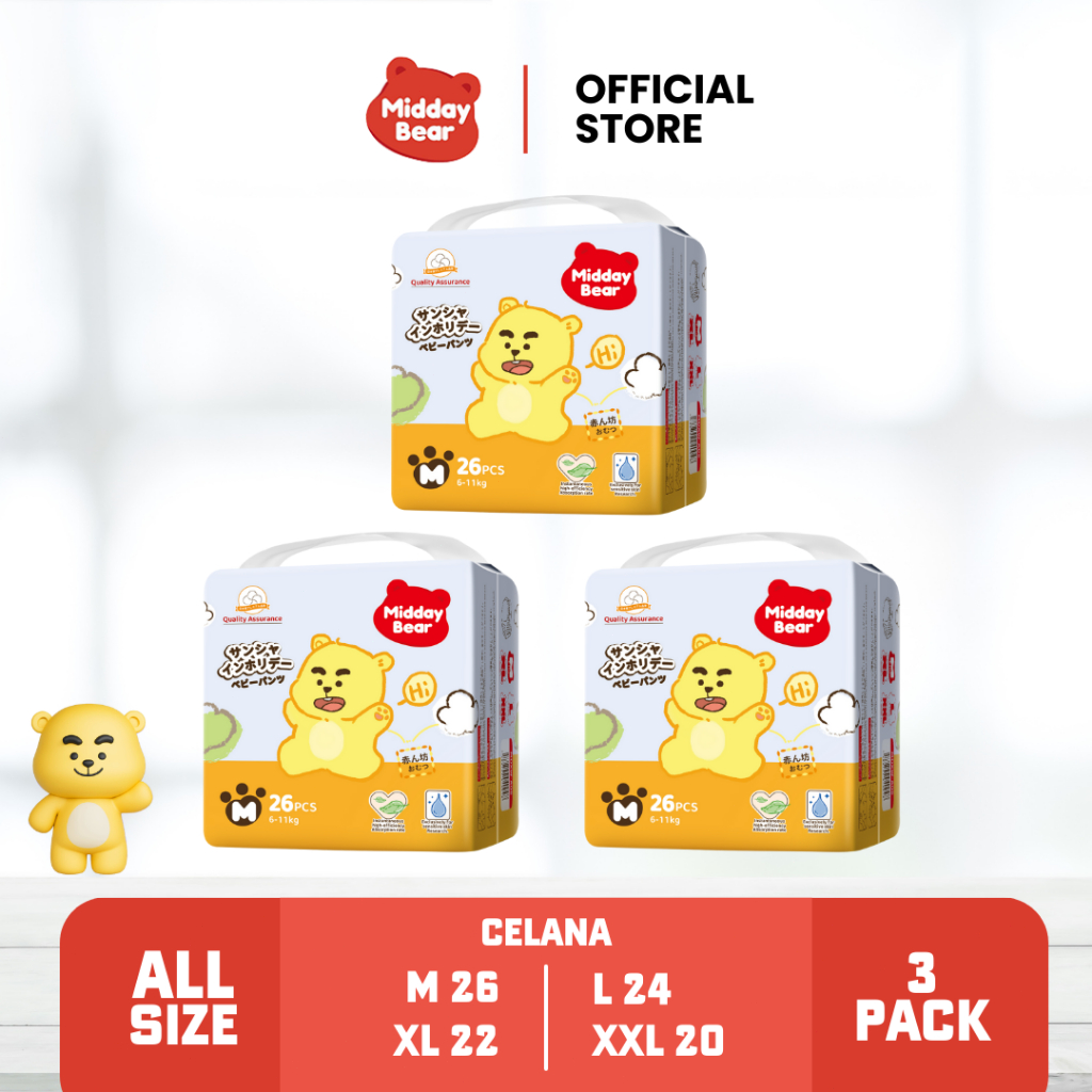 [3 Pack] Midday Bear Popok Celana Sekali Pakai Holiday Pull-Up Pants Size M/L/XL/XXL