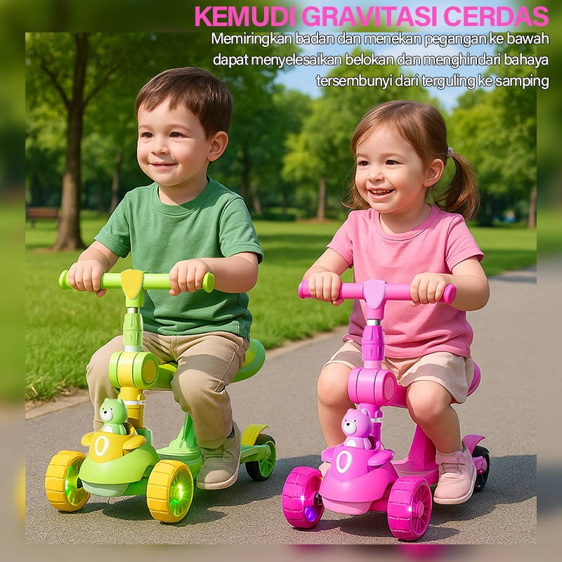 GM Bear x Cuddlee Skuter Mainan Anak Karakter Beruang 3 in 1 P0615 - Skuter Lipat Mainan Anak Karakter Beruang 3 in 1