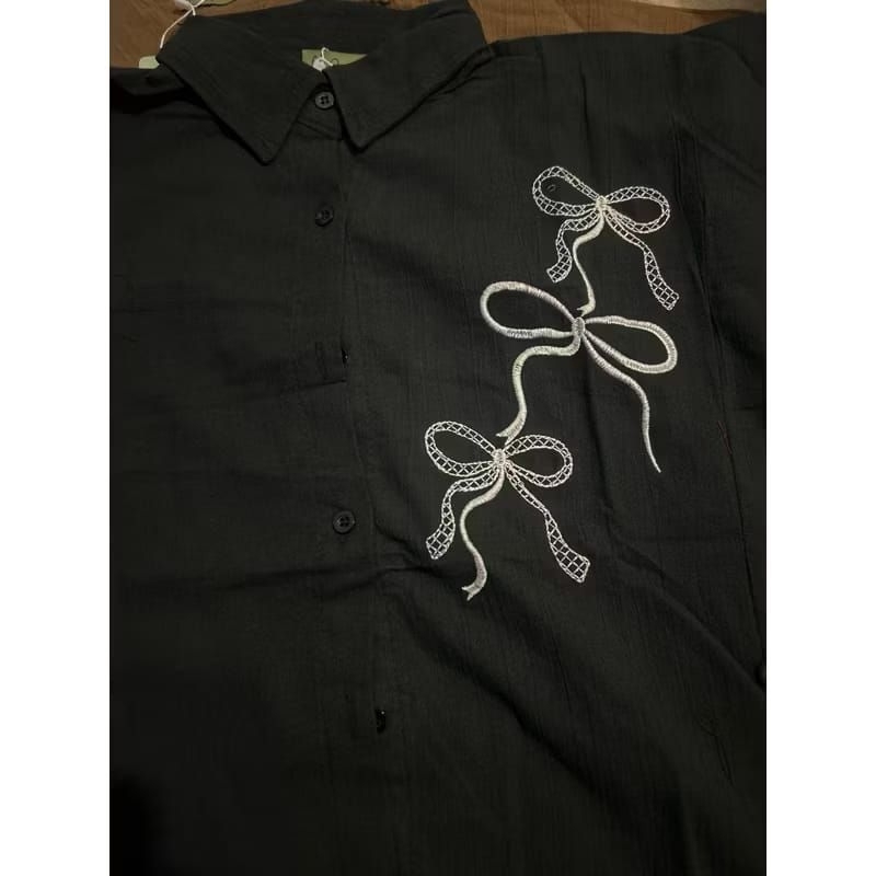 Haruka Angel Blouse Bordir Ribbon Shirt Atasan Kemeja Wanita Linen Premium