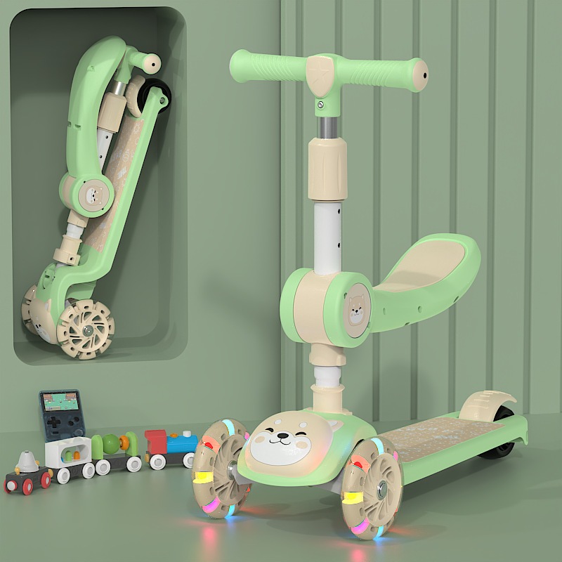 NIVICO BEBE Scooter Anak Roda 3 Skuter Lipat 3 Roda dengan Tempat Duduk, Musik, dan Mainan Lampu Mainan Anak