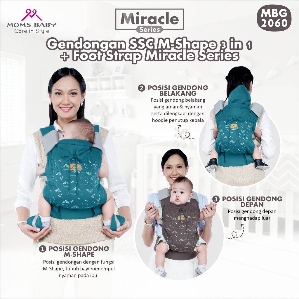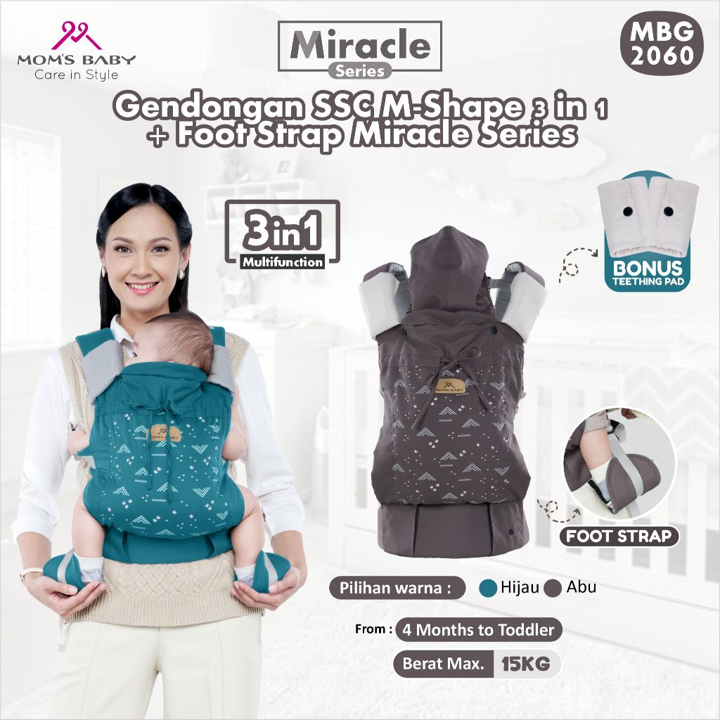 MOM'S BABY Gendongan SSC M-Shape 3 in 1 + Foot Strap Miracle Series MBG2060