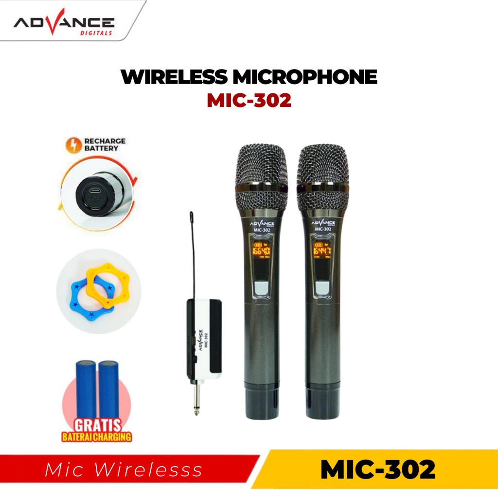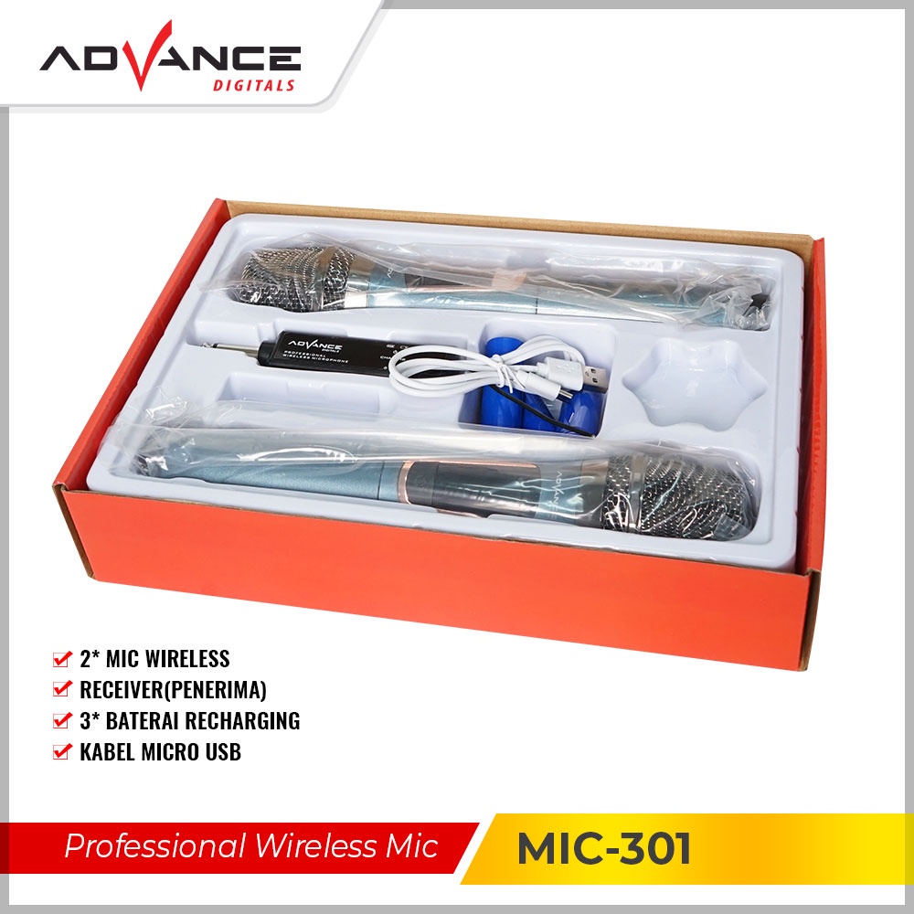 Advance Mic Wireless Microphone Mic double (Batrei dapat di Charger )UHP Digital mikropon due 301/302