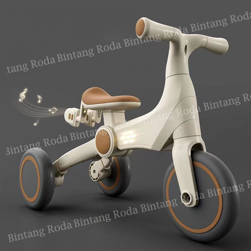 Stok Lokal Sepeda Anak 4 in 1 - Sepeda Roda Tiga & Balance Bike Bayi dengan Musik & Lampu LED, Bisa Dipakai Usia 1-5 Tahun - Hadiah Ulang Tahun