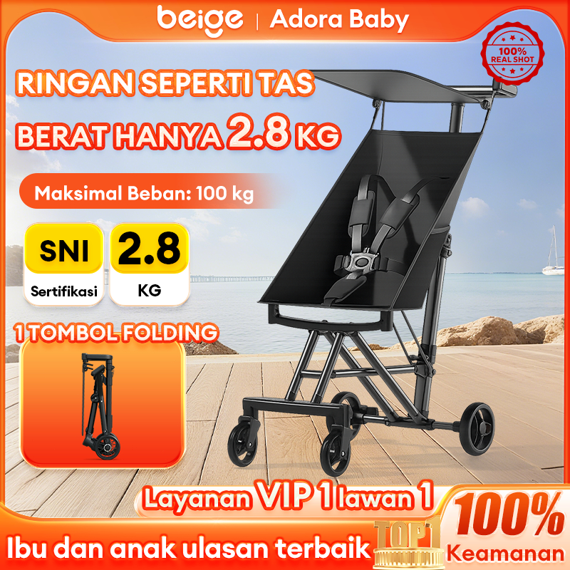 beige Stroller Bayi 2 Arah Lipat Rebah Penuh Beban Berapa 110kg perlengkapan bayi traveling