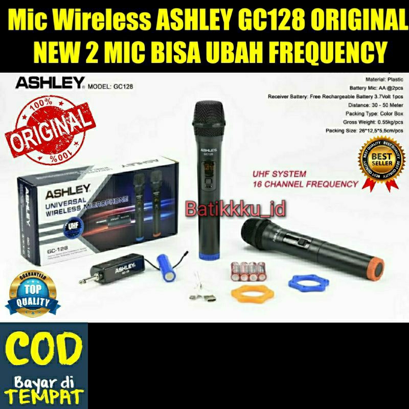 Mic Wireless ASHLEY GC 128 GC128 ORIGINAL BISA UBAH FREQUENCY 2 MIC WIRELESS FREE RING