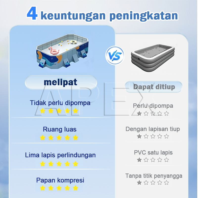 Kolam renang keluarga besar kolam renang Maladewa biru non-tiup kolam renang anak-anak lipat, kolam renang braket besar aman dan stabil