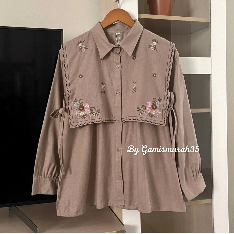 Narika Shirt - Ukuran S M L XL XXL XXXL 5L - Kemeja Jumbo - Atasan Wanita Jumbo Kekinian Bahan Linen Ld 140 130 120 110 Blouse Terbaru Vest Depan Belakang Putih Hitam Latte Burgundy
