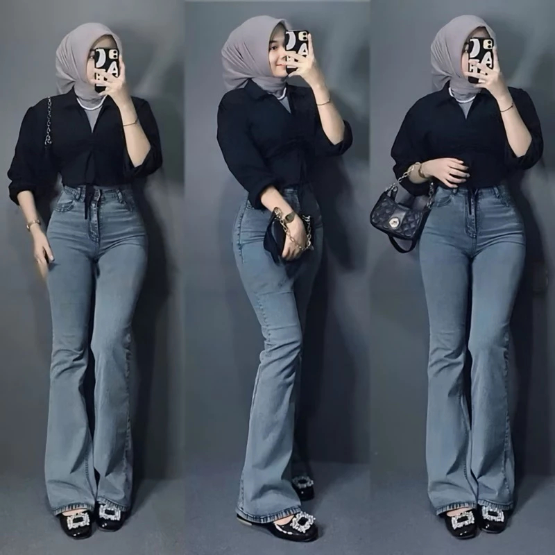Highwaist Cutbray Jeans Wanita Loose Kekinian-Celana Jeans Cutbray Streach Wanita Premium Quality