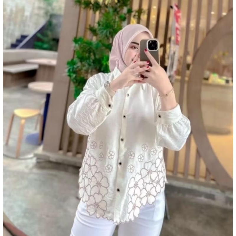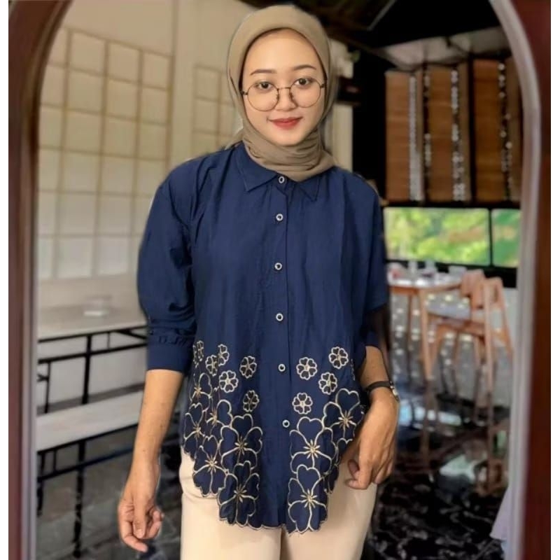 KEMEJA WANITA DEANDA MOTIF BORDIR/KEMEJA polo linen motif bunga bordir kekinian/BLOUSE KOREAN kekinian