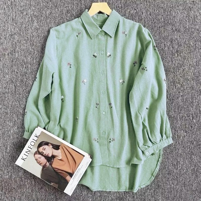 Atasan Wanita Blouse Oversize Kemeja Basic Matt Linen Rami