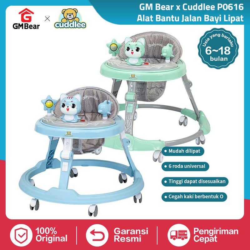 GM Bear x Cuddlee Alat Bantu Jalan Bayi (P0616) – Baby Walker Bisa Lipat & Mainan