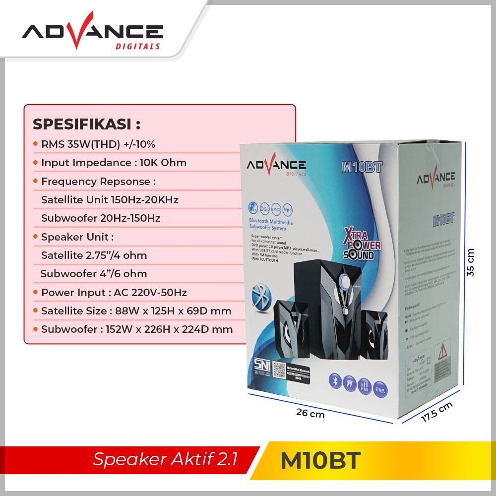 Advance Speaker Bluetooth Music Box Stereo Multimedia Extra Bass Subwoofer M10BT Garansi 1 Tahun