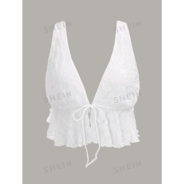 SHEIN ICON TIE FRONT OPEN BACK TEXTURED TANK T0P - WHITE, XXS