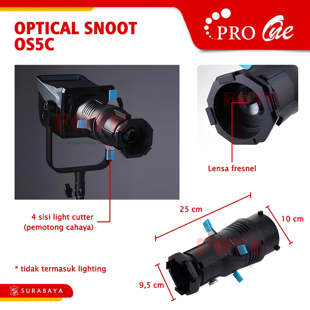 Pro One Optical Snoot Kit Projector Proyektor Lensa Fresnel Light Cutter Pemotong Cahaya Bentuk Self Studio Gobos Gobo Set Bowens