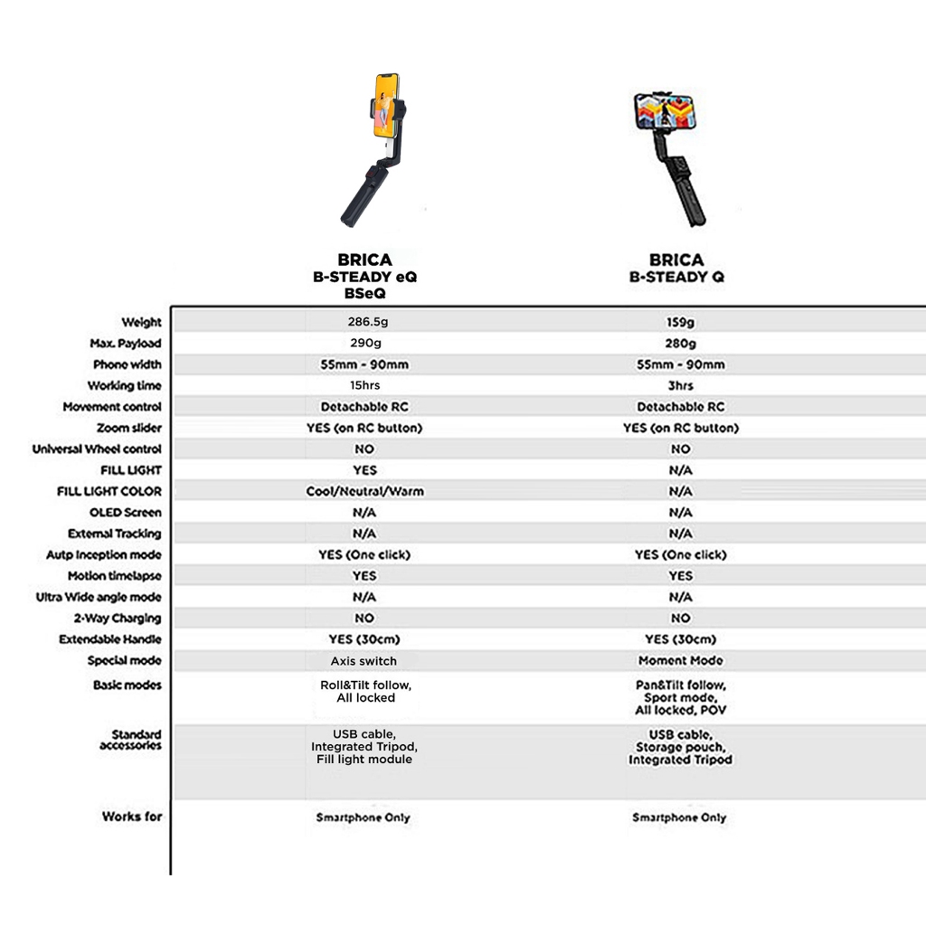 Brica BSteady eQ - BSteady Q - B-Steady Q - Selfie Smart Gimbal - Black - B-Steady eQ & Q Series
