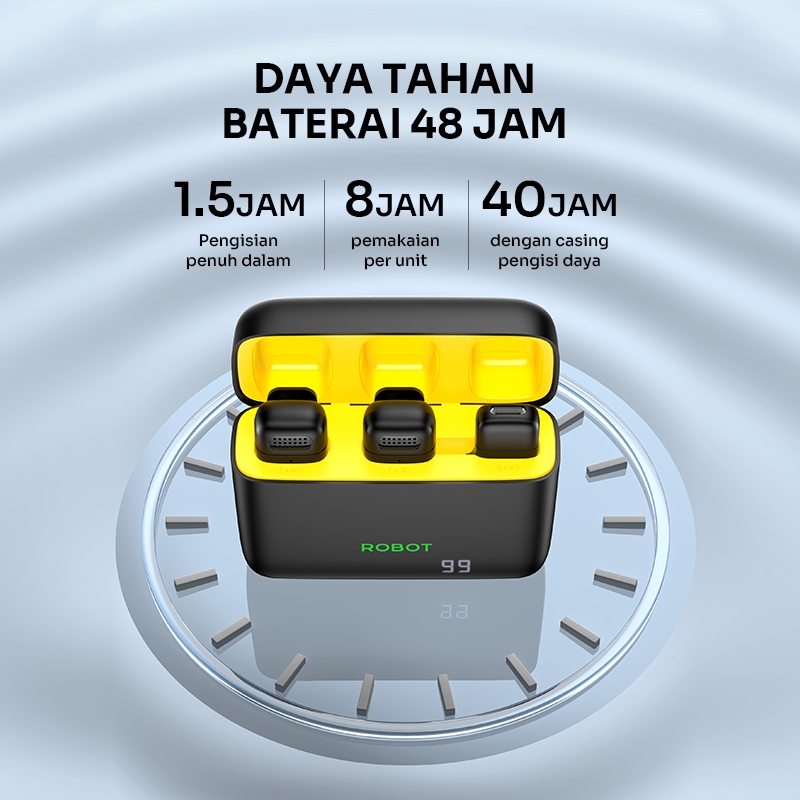 ROBOT Microphone Clip Nirkabel iOS Android Lavalier with AI 20m for Audio/Video/Recording/Live/Broadcast/Gaming RS20 Plus Original - Garansi 1 Tahun