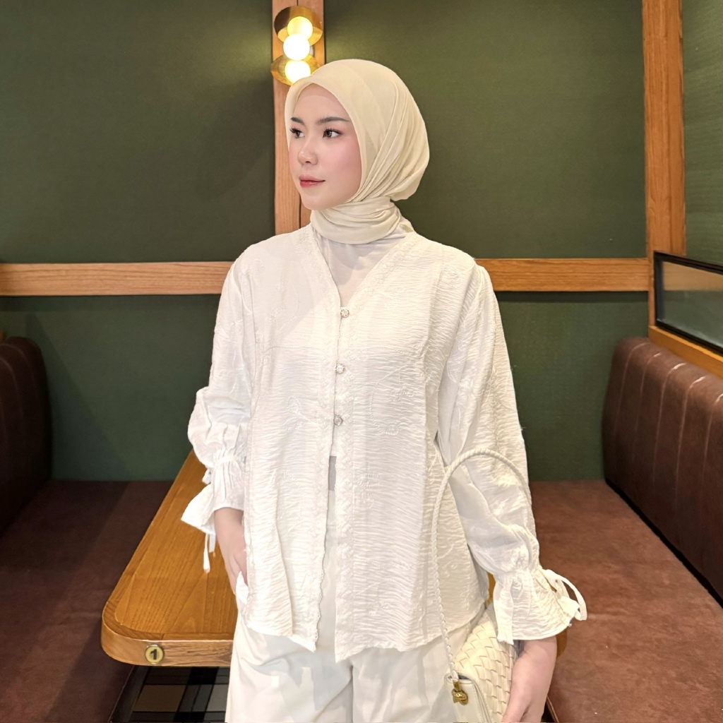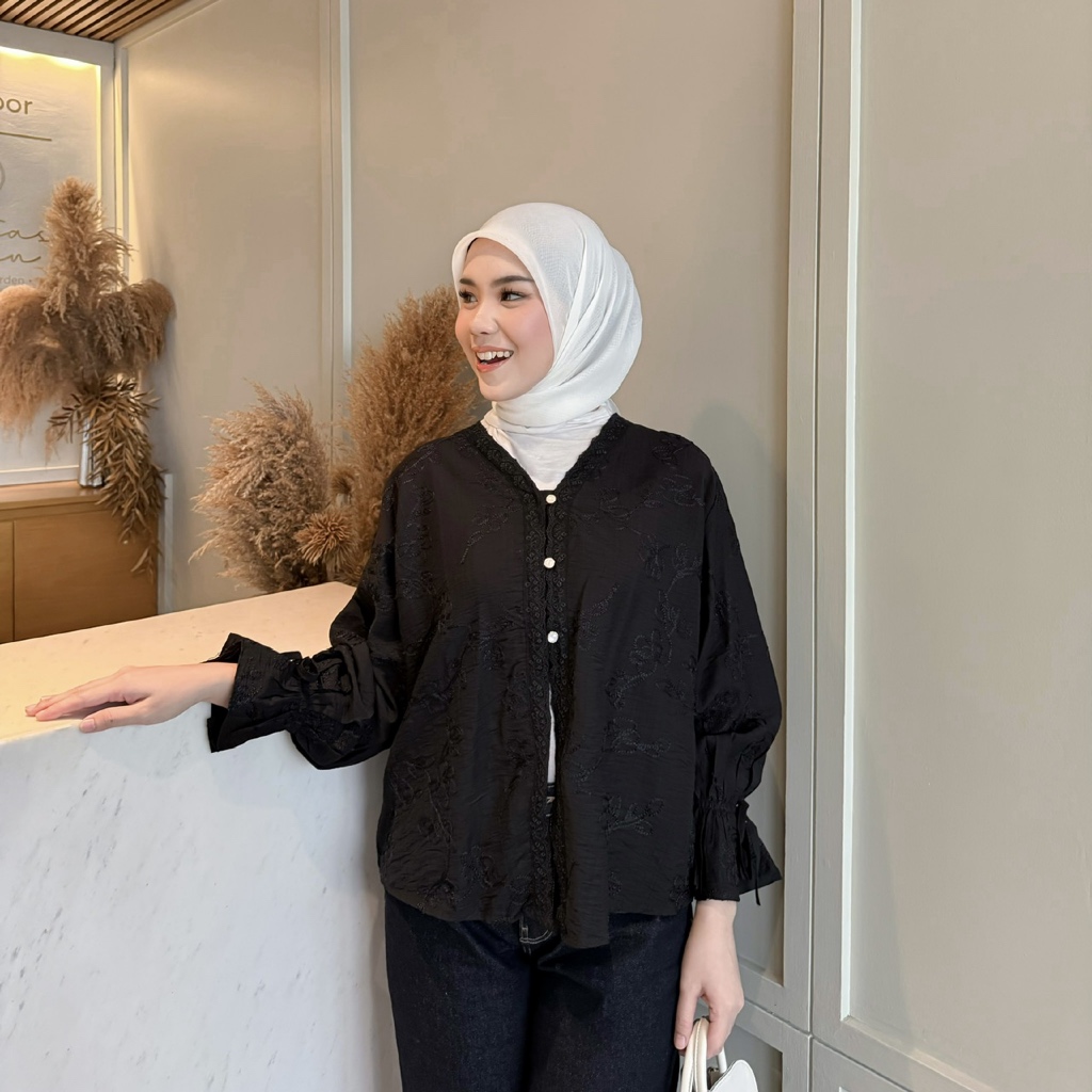 NENA Aurelia Lace Embroidery Blouse – Atasan Wanita Brukat Bordir Elegant Polo Linen